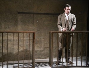 Jamie Muscato gives a riveting performance as the unfortunate Holyoake, an unassuming figure who overcomes a severe stammer to make his case with passion and conviction. It’s a testament to Muscato’s presence and performance that even during his lengthy courtroom speech, we still hang on his every word. He’s joined by a versatile cast of five, who take on a multitude of roles; Edmund Digby-Jones impresses with an astonishingly fast and fluent delivery of the indictment against Holyoake, while Doron Davidson plays no less than five characters, each with a different accent and personality.