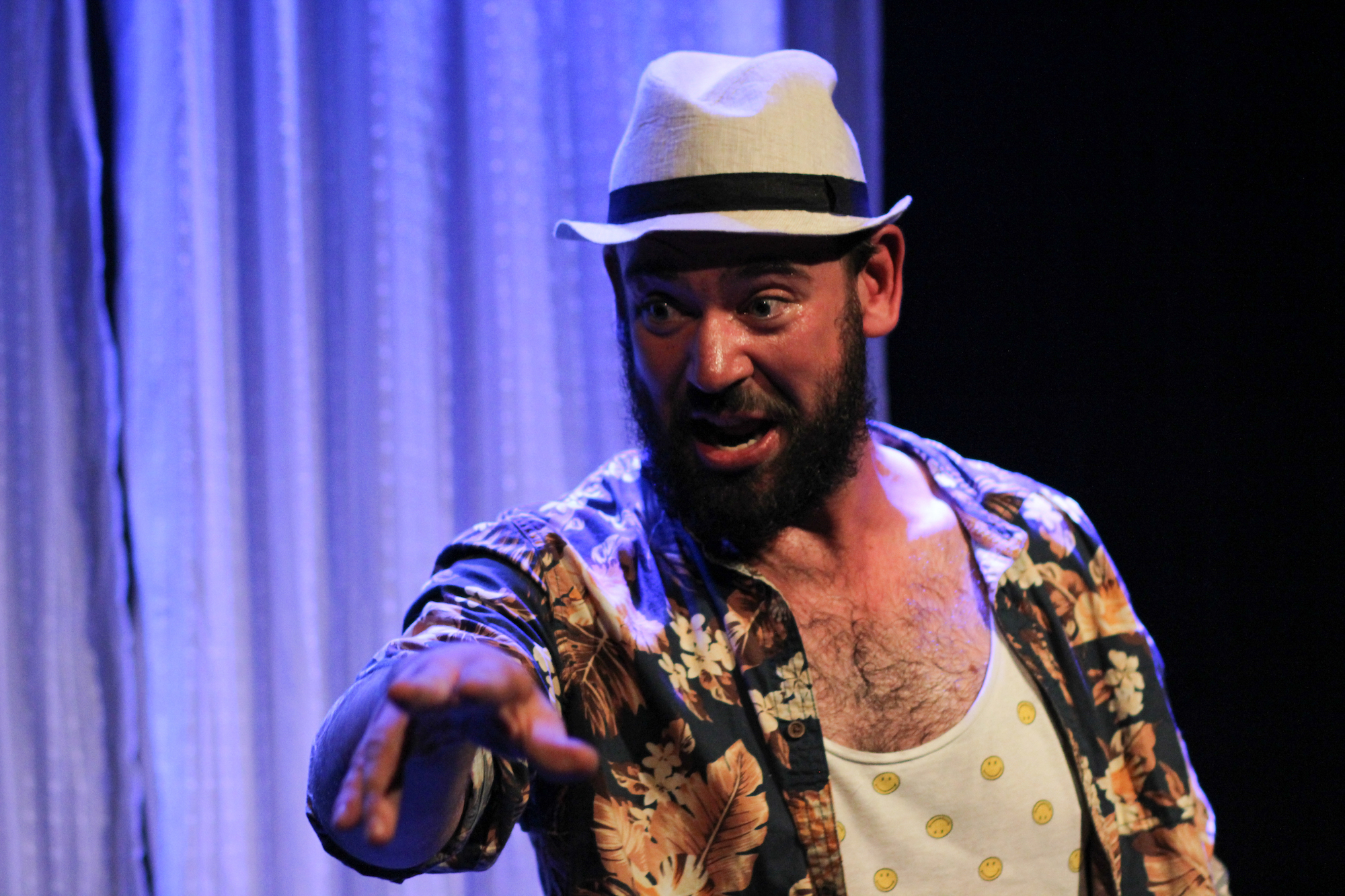 Now, I must admit I’ve seen the first piece, Cyprus Sunsets, before, so I wasn’t as taken aback this time by the twist in the tale – but that didn’t ruin it for me. In a way, knowing what’s coming actually makes the piece more powerful; there are hints scattered throughout that give the words new significance, and force us to consider how what’s really happening could have gone unnoticed for so long. And John Seaward’s performance as frustrated tourist Me is certainly no less mesmerising, entertaining or emotionally shattering second time around. To hold a roomful of people spellbound for 50 minutes whilst armed only with a suitcase and a pair of sunglasses is no mean feat, yet Seaward commands our attention with ease.