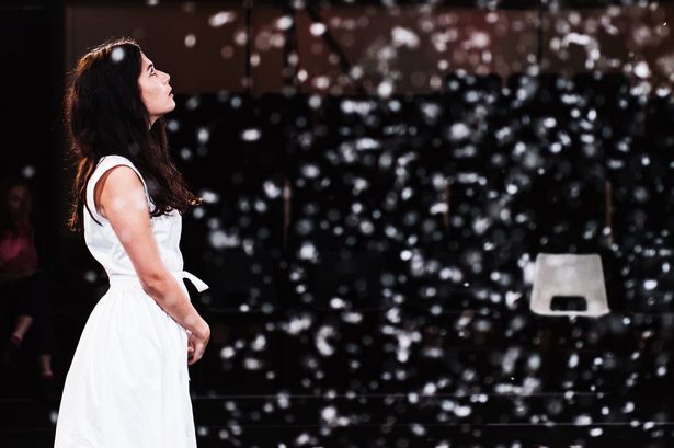 I think this is perhaps due to two things which I simply didn’t like about this production. I can only think these were directorial choices rather than scripted, and I must admit was somewhat put off the play because of them. The first is that some of the audience are invited to sit on plastic chairs on the stage, and become a part of the play for those not on the stage. I really liked the idea at first when I took my seat, as the stage was full of people sitting at desks crowded together and chatting. It looked like a school canteen. I understood the relevance for using audience in this way, as the director Sarah Frankcom is using every trick in the book to make this play relevant for our multi-cultural 21st century ‘town’ and therefore inviting audience to become a part of a play that challenges and distorts reality brings much more a community feel to the whole. It almost works in the first act, but in the second and third acts it’s odd and seems wholly inappropriate for them to be on stage.