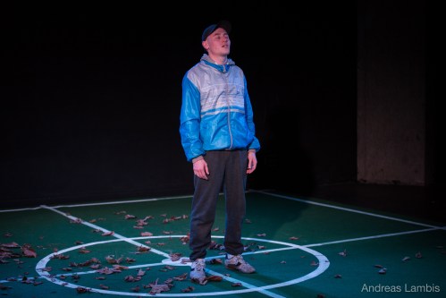 Will Mytum gives an utterly compelling solo performance as both Boy and Matty (he even has a convincing play-fight with himself at one point). Delivering Niall Ransome’s rhyming verse in a way that highlights the poetry but still sounds completely natural, Mytum has all the swagger and false confidence of any teenager, but with a haunted expression that reveals the self-loathing and insecurity lurking not far beneath the surface. Then, all of a sudden, it’s like a switch is thrown as he transforms into Matty and we see all the fear and doubt fall away. Matty is adorable – innocent, inquisitive, and with such absolute faith in his big brother that he’ll follow him anywhere, no matter what it might cost.