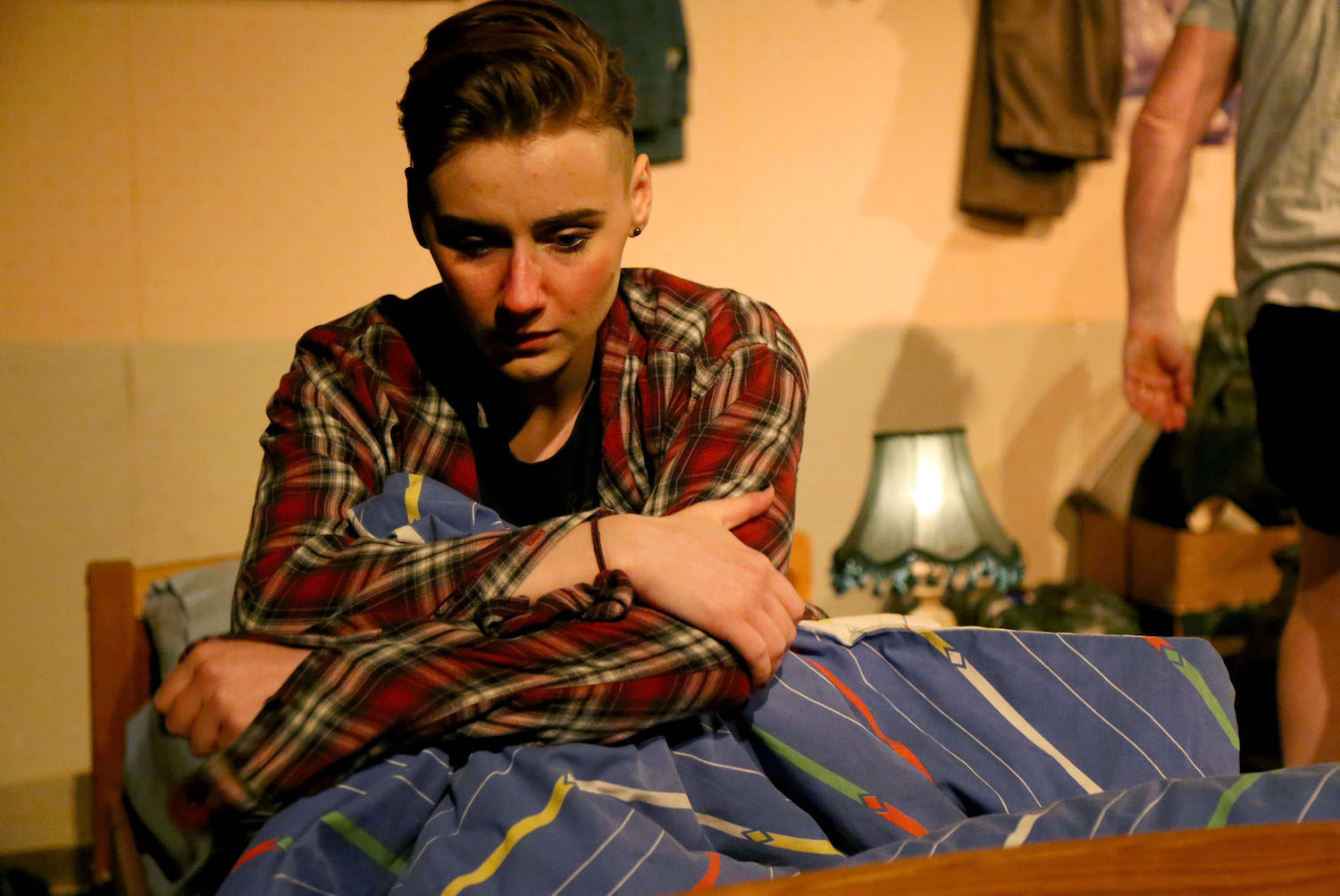 Into all this quiet drama steps Howie Ripley’s Kenneth, in the first of two brief but memorable appearances, and instantly the play takes on a different energy as he prowls restlessly around Tommy’s room, taking in every detail and rambling about the darkness outside. We know something bad’s going to happen, but when it does it’s still unexpected enough to leave the audience sitting in shocked – and, if I’m honest, slightly perplexed – silence as we head into the interval. Both this moment of drama and the one that follows in Act 2 are well acted and directed, but don’t seem to fit within the rest of the play, particularly as neither event is really discussed again by the characters once the immediate aftermath is over. This is so odd, in fact, that it feels like it must be deliberate – so perhaps this is one of those details that will take on new meaning after a few days’ reflection.