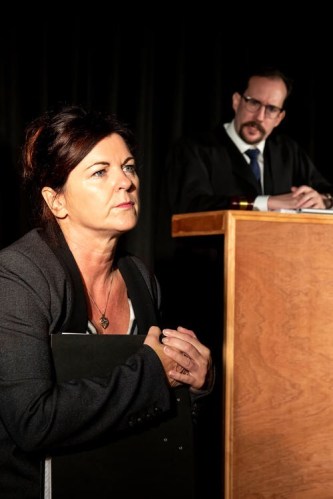 Nowhere is this more clearly demonstrated than in the play’s second act, “The Trial”, in which Adam Bottomley’s classroom set is quickly and efficiently converted into a courtroom, presided over by the ironically named Judge Goode (Edwin Flay). Here Cathy is forced to relive all over again the nightmare day she fought to keep her children and lost – the difference being that this time she understands the subtext of what’s going on, and the multiple ways that the male-dominated legal system was always set up to work against her. Consequently the scene descends into a kind of dark farce, which despite moments of humour is ultimately quite heartbreaking to watch.