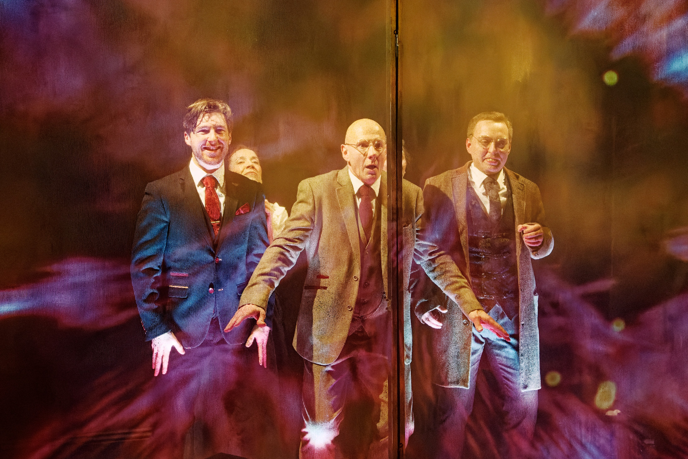 As always, the production values are exceptionally high, with every element – set and costume design by Odin Corie, lighting by Jonathan Simpson and videography by Douglas Baker – coming together in a visually beautiful piece of work. The use of a gauze screen to separate elements of the story, either by time or place, works very effectively, and the employment of projected silent movie style captions contributes to the cinematic feel of the production as a whole.