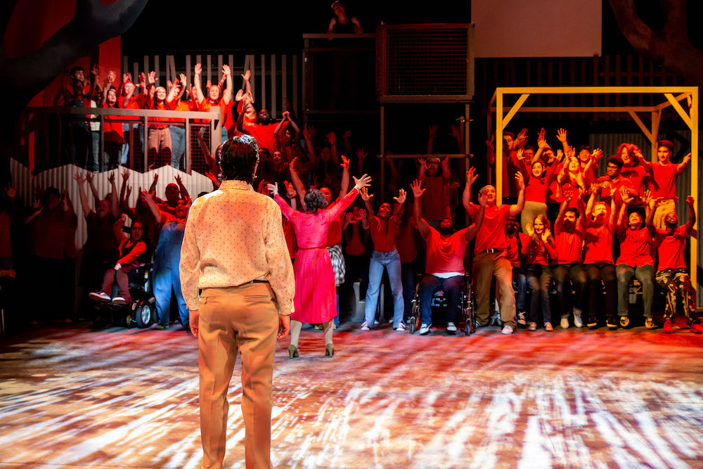 Presented in the round, the production is extremely immersive, which means that while the audience feels uncomfortably close to the tragedy, we’re also very involved in the joy and sense of community portrayed in earlier scenes set within the compound. The creative team have very pointedly made the focus of the story not Jones’ intentions but those of his followers, who set out to find a better world free of racism and violence, and continued to cling to the hope of finding it right to the very end. One of the show’s most moving sequences features the washing line of the title, where we see the camaraderie and collaboration between the group’s members, and the joyous opening number in Act 2 threatens to sweep us all up in their optimism and shared faith – a stark contrast to the end of Act 1, which paints a dark picture of the life they left behind. As a result, despite the benefit of hindsight, we do get a real sense of why people wanted to be a part of the Peoples Temple project, and why they were so reluctant to give up on their dream and return home even when that dream began to unravel.