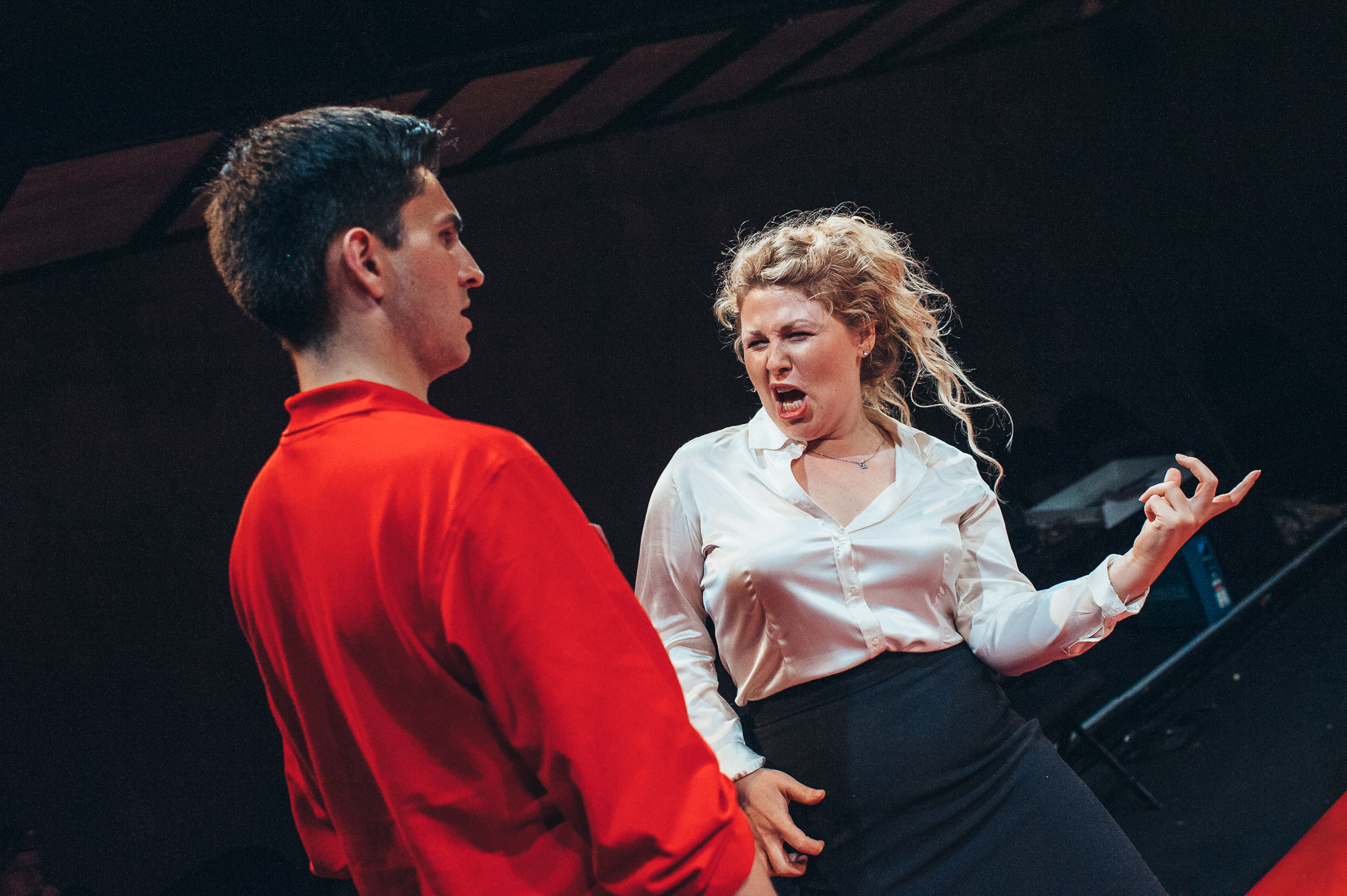 Fortunately, we’re saved from anything too heavy by a witty script from Kieran Lynn, who clearly shares regional manager Meryl’s love for a good metaphor, and four strong comic performances from the cast (Jahvel Hall, Sophie Guiver, Andrew Macbean and Wendy Kweh). All four characters are somewhat ethically challenged – with the exception of Jahvel Hall’s Tom, who keeps trying to do the right thing in the face of intense peer pressure – but they’re also incompetent enough as both moneylenders and criminals that we just end up feeling sorry for them (Andrew Macbean cuts a particularly pathetic figure as the hapless Alan). The true villain of the piece is the unseen, mythical figure of company boss Trevor Wynyard, who has the power to make or break everyone else’s lives whilst remaining untouchable himself.