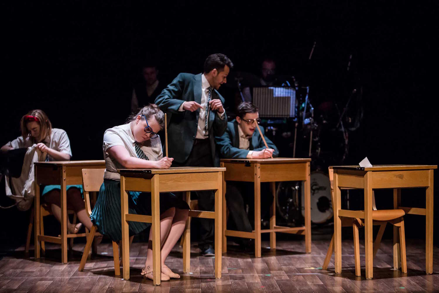 This is fortunate, because the fragmented narrative of the piece, which hops around in time, location and style, does demand the audience’s constant focus in order to piece it all together. We’re aided in this, to some extent, by the use of music and loop pedalled sound, composed and performed live from the corner of the stage by Sam Elwin, and by Will Monks’ projections, both of which provide us with certain audiovisual signposts as we make our way through the show’s deliberately disorienting landscape.