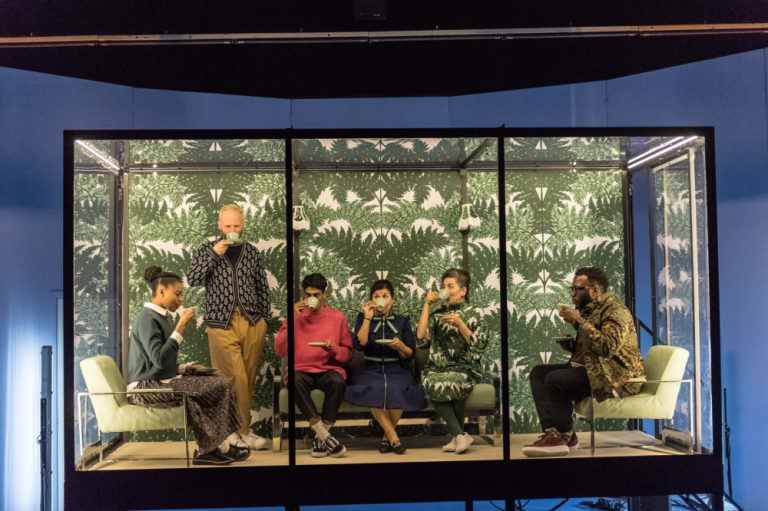 The cast give high-energy and flamboyant performances, delivering characters that go from Mighty Boosh-style slapstick to restrained moments of personal reflection. Its mixed-race cast of professional actors speak like bourgeoisie elitists, slipping in some modern phrases, to create a peculiar anachronism with Shaw’s original text. The supporting actors are versatile, especially Raphael Sowole as Colonel Pickering and Ian Burfield as Alfred Doolittle, showing their pitch-perfect timing at comic relief. The two leading actors, Alex Beckett and Natalie Gavin, whose performances require them to use different accents whilst showing the turns of the characters, are fascinating throughout.