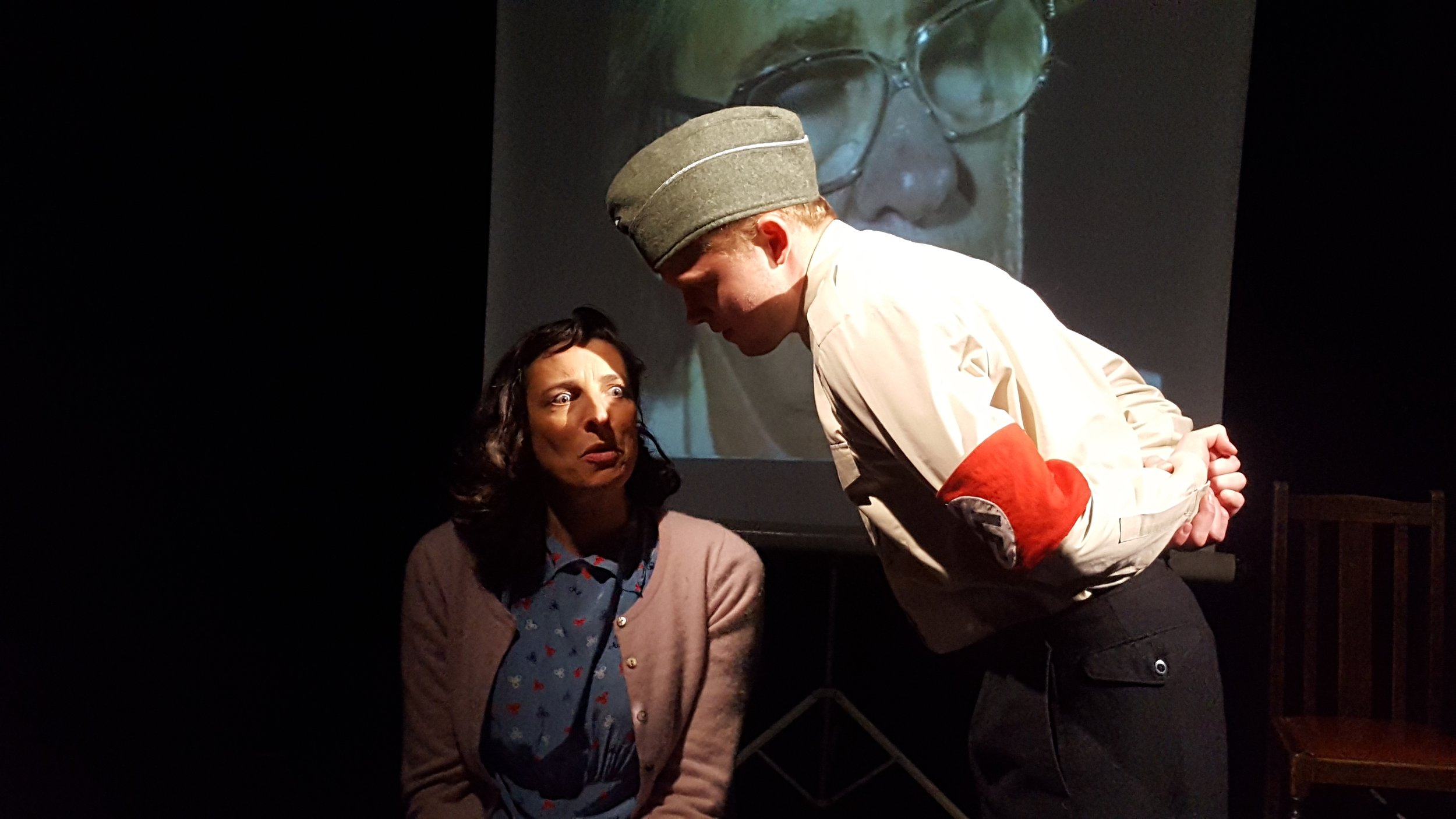 Eva herself also appears in the play, which uses a unique combination of video footage and live action to tell her story, along with that of Ed Silverberg (formerly Helmuth ‘Hello’ Silberberg) and their mutual friend, Anne Frank. All three were young teenagers when the persecution of the Jews began, and so we see the nightmare through two sets of eyes: those of the adult Eva and Ed looking back on what happened, and those of the confused children trying to comprehend the terrifying ordeal they’re living through.