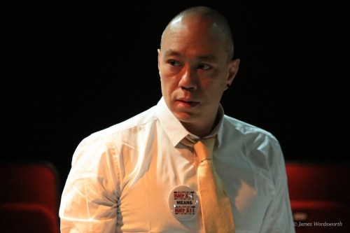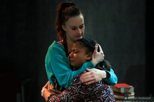 Joshua McTaggart’s production begins in an orderly fashion, with Flora Montgomery’s meticulously controlled Hillary presenting each of the characters in “her play” as they emerge from behind a curtain at the back of the stage. Then Monica, played by Daniella Isaacs, crashes the party, at which point the narrative takes a very different direction. She wants to tell her side of the story, and does so with colour and emotion; in fact she’s the total opposite of Hillary, and if we met her out of context, we’d probably quite like her. It’s a sympathetic view of a woman who’s rarely seen in such a positive light: young and in love, she’s manipulated by those around her and pays for it by becoming the face and name of a global scandal.