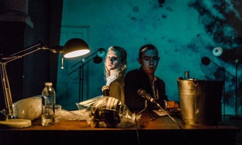 The central character is played beautifully by two actors – Clementine Mills as Harry and Matthew Coulton as Eugenia – a simple yet highly effective way of separating the two personas. Eugenia is submissive, anxious and seems constantly uncomfortable in her own skin, while Harry, though played by an actor who’s physically shorter, seems far larger in stature and confidence. At one point they deliver overlapping monologues that sum up the distinction: “I’m terribly afraid,” says Eugenia, while Harry states defiantly, “I’m not afraid.” The one phrase they have in common: “I did not kill this woman.”