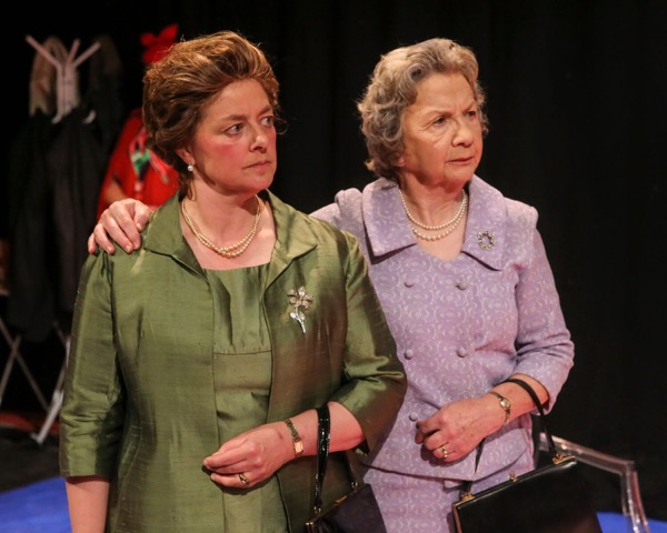 An easily recognisable older and younger version of each leader – playfully referred to in the programme as Q and T, Liz and Mags respectively – look back on events over tea and cake, bickering about what did and didn’t happen, while two increasingly dissatisfied (and disruptive) actors fill in all the other parts in the story, from Denis Thatcher to Nancy Reagan. Directed by Martin Mulgrew, Helen McCormack and Alison Liney’s Queen is warm and personable, with an occasional mischievous streak, and an urgent desire to be ‘useful’ to her country and people. In contrast, Anne Connell and Julie Arrowsmith both nail Margaret Thatcher’s icy facade, practised speech patterns and frozen facial expression – but not to such an extent that we can fail to see the vulnerability beneath, particularly towards the end of the play.